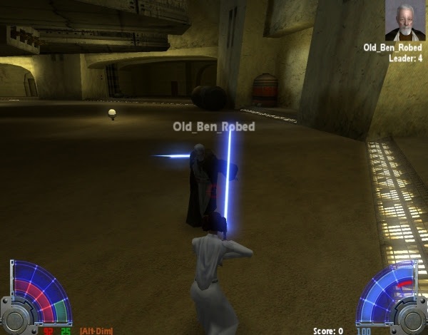 This Living Dead Jedi also made an interesting night time Tatooine--unlike the Bespin map, this one has bot support, so Obi-Wan Kenobi, Luke Skywalker, a Gammorean, and a stormtrooper were running around with me. I was Princess Leia.