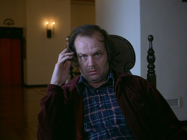 A lot has been made of the fact that Kubrick's movie differs in several significant ways from the Stephen King book upon which it was based, several of these changes having met with King's displeasure, chief among them was perhaps the character of Jack Torrance. In the book, Torrance is a man who is sane and good at the beginning, later perverted by the spirits in the Overlook Hotel. In Kubrick's film, Jack Nicholson portrays Torrance as a bit off right from the start.