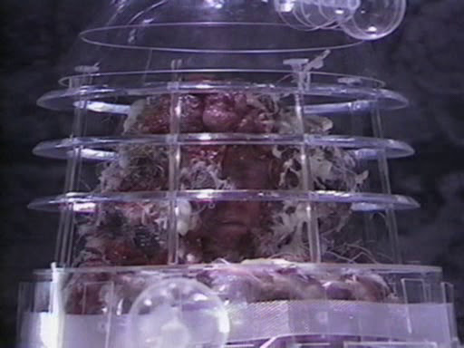 I never did warm up to the sixth Doctor, but I will say season 22 wasn't a complete waste of time. There were only two serials that felt like genuine torture--"Vengeance on Varos" and "Timelash". "Vengeance on Varos" did feature Sheila Reid, Mrs. Tuttle (or was it Buttle? It's been confusion from the word go) from Brazil, though she's in a strikingly phoney role as a member of a television audience for the serial's Running Man style plot wherein the Doctor and criminals are forced to overcome deadly obstacles for the amusement of that audience. So, so bad, though not as bad as the phoney DJ in "Revelation of the Daleks", a serial I otherwise rather liked, particularly the horrific moment where a young woman comes across her father being turned into a Dalek and he begs her to kill him.