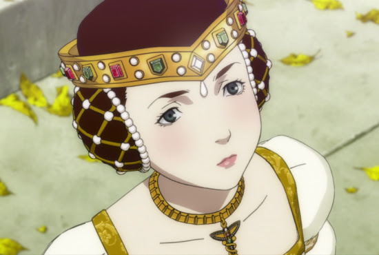 The plot takes place in an alternate reality late medieval England, where the evil Tudors are trying to destroy another group of unnamed royals, the good guys. The lead character, presumably the berserk one, is named *sigh* Guts. Though he works out to not be terribly berserk when during a key assassination he's inexplicably taken aback by some bloodshed. Well, it's inexplicable until we see that it's cumbersomely contrived to push along some central character conflict.