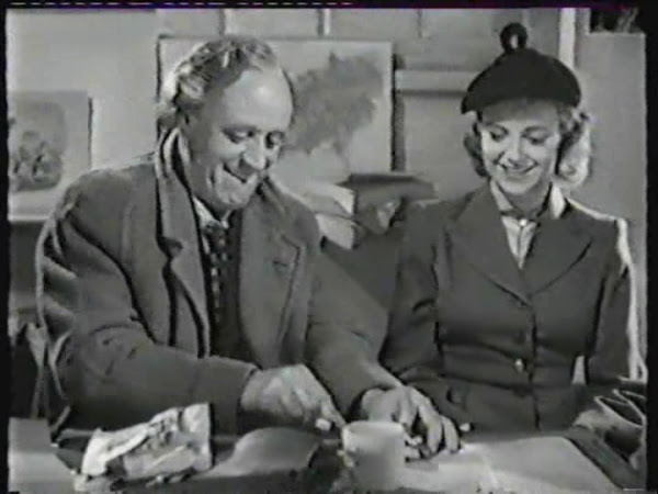 And I'm by no means referring to just the female characters with the kittens simile--here George Cole as Marjorie's boyfriend Johnny enthusiastically makes a mess of himself with an ice cream, barely seeming to notice Marjorie swooning over the movie star on screen. He notices later when, after winning a national beauty pageant, that same movie star, Simon Abott (Dennis Price), invites her onto his yacht.