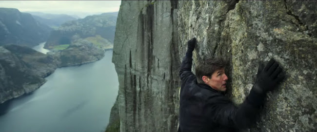 Good old Tom Cruise. Fifty six years old and the biggest daredevil in Hollywood. Constantly doing his own extravagant stunts, including a super high altitude skydive in this film, has become an integral part of his fame. And it's certainly a benefit for M:I--Fallout--there are subtle, natural reactions an actor has to a physical situation that cgi simply can't predict. A truly talented artist can make cgi action interesting but such sequences are at their best when they're expressions of those artists' sensibilities. The personality in Spider-Man flipping about between buildings has a different appeal than the sense of volatility in Cruise suddenly, unexpectedly scrabbling on the side of a rooftop.