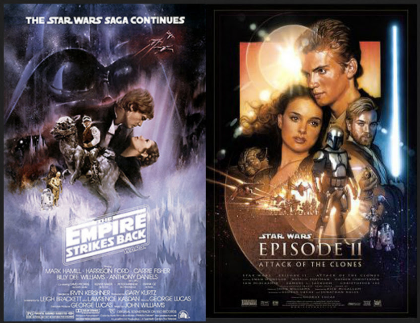Of his Star Wars posters, I like the ones where he leaned into romance the best, Empire Strikes Back and Attack of the Clones.